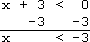 ...which is pronounced as "all x such that x is less than minus three". You might even see set-notation solutions stated as the inequality solution, but that inequality will be put inside curly braces to say that the solution is a set of points: {x < −3}.