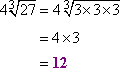 I know that 27 = 33, so the cube root will simplify to a whole number. Then I'll finish by multiplying.
