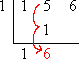 First, take the polynomial (in our case, x2 + 5x + 6), and write the coefficients ONLY inside an upside-down division-type symbol: